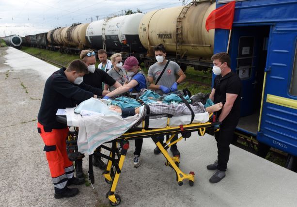 Des volontaires de l'ONG Médecins sans frontières transportent les blessés du front vers l'ouest de l'Ukraine, une région relativement épargnée par les hostilités.L'Otan et le blocage turc