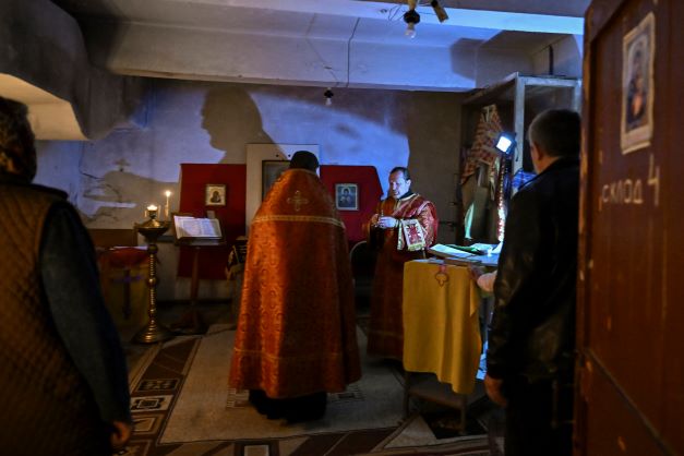 A Lyssytchansk, une ville du Donbass, on est contraint de célébrer la messe dans les sous-sols à l'abri des bombesLe président ukrainien Volodymyr Zelensky a averti samedi que la phase actuelle de la guerre, où les Russes concentrent leurs efforts dans l'Est, "sera sanglante", mais que finalement elle devra se résoudre "via la diplomatie".