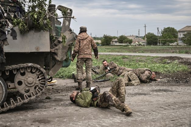 Des photos fournies par l'AFP montrant des soldats ukrainiens sur le front du Donbass, blessés au combat et évacués vers l'arrière pour être soignésSept civils ont été tués et 10 blessés samedi dans la région de Donetsk, a ainsi annoncé samedi sur Telegram son gouverneur Pavlo Kyrylenko.