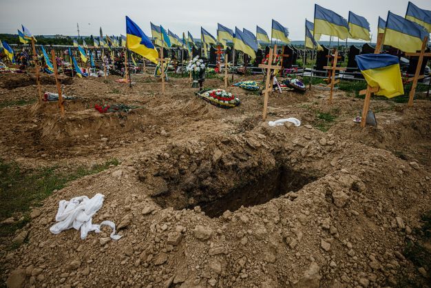 Près de Kharkiv, la deuxième ville du pays proche de la frontière russe, l'heure était samedi aux enterrements dans le carré militaire du cimetière de Bezlioudikova, un village libéré un mois auparavant au prix de violents combats.
