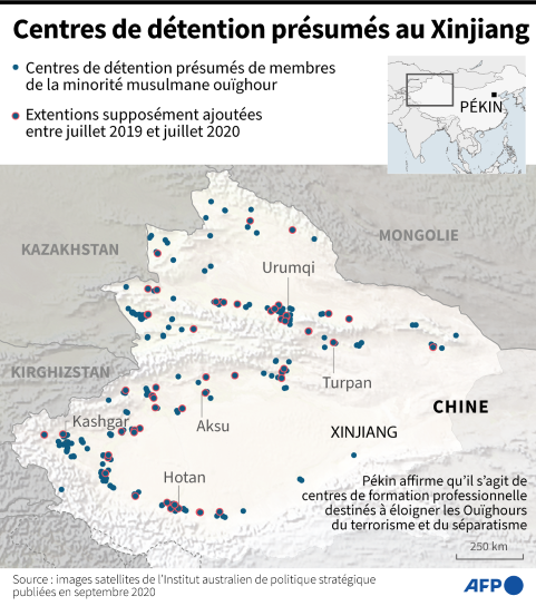 Les États-Unis affirment que la Chine commet un "génocide" à l'encontre des Ouïghours - qui représentent près de la moitié de la population du Xinjiang avec 12 millions d'habitants - et ont imposé des sanctions en réponse. La Chine dément vigoureusement et qualifie ces allégations de "mensonge du siècle".