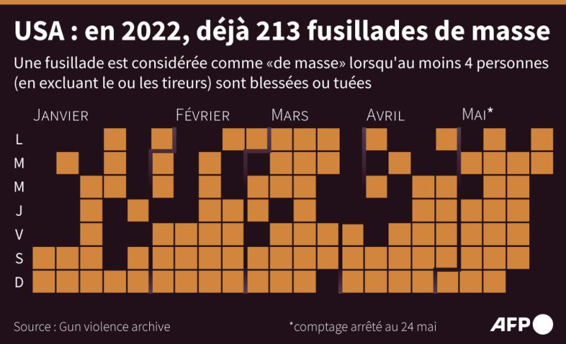 Un adolescent de 18 ans a ouvert le feu mardi dans une école primaire au Texas, tuant 21 jeunes élèves et deux adultes, un drame qui a replongé l'Amérique dans un cauchemar chronique, Joe Biden exhortant à un sursaut pour réguler les armes à feu.