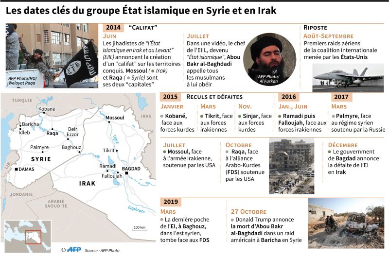 Abou Bakr al-Baghdadi, le chef de l'État islamique d'Irak et du Levant (Daech), qui a déclaré son califat en 2014, a été tué lors d'un raid américain à Idlib en octobre 2019. (Photo)