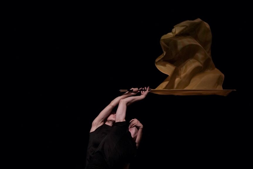 Cette 18e édition du Bipod, diffusée en direct sur la plateforme numérique Citerne.live, se déroule à Lyon puis à Beyrouth. Elle s’est ouverte le 25 mai au théâtre Béryte avec l’éblouissante performance de Ginevra Panzetti et Enrico Ticconi (Italie/Allemagne) intitulée ARA! ARA!. À travers un imaginaire qui puise à la fois dans un imaginaire romantique et pictural (je pense à La Liberté guidant le peuple de Delacroix), des arts martiaux, des symboles héraldiques, militaires, tribaux, animaliers mais aussi des codes de la danse (comment ne pas penser à du Loïe Fuller), le spectacle est un époustouflant cri de rage en même temps qu’une catharsis.