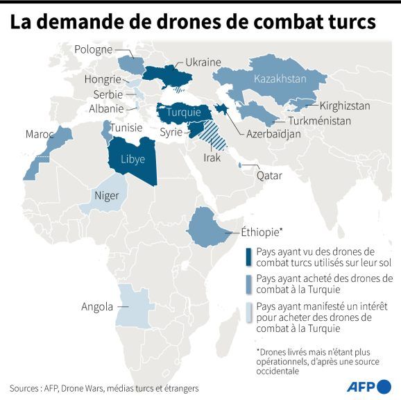 "Les drones turcs tels que les Bayraktar TB2 sont de plus en plus répandus et de plus en plus importants dans les conflits modernes", relève Michael Boyle, spécialiste des drones à l'université Rutgers, aux Etats-Unis.
