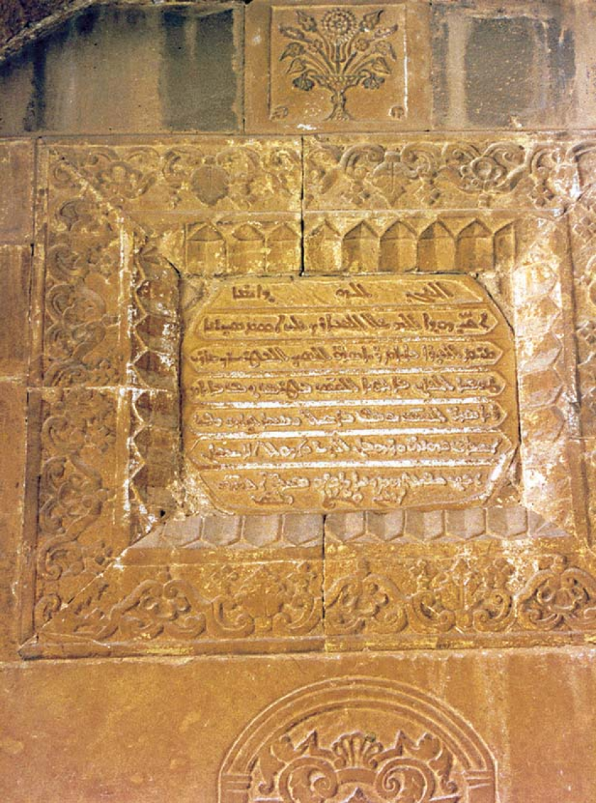 L’artiste autrichien ou vénitien a magnifiquement reproduit les textes latin et autrichien, alors que les inscriptions garshouné en lettres syriaques ont été redessinées sans la moindre notion de cet alphabet. Le texte du tympan a même été gravé à l’envers, le moine n’ayant pas précisé dans quel sens son papier devait être porté. Partout les lettres de l’alphabet syriaque, reprises comme de simples dessins, sont difficilement déchiffrables. Ainsi, les ‘Ain sont plus élevés que les Lomad, les Pé et les Qof sont allongés, presque couchés, et les Olaph finaux sont anormalement bouclés comme s’il s’agissait de Pé.