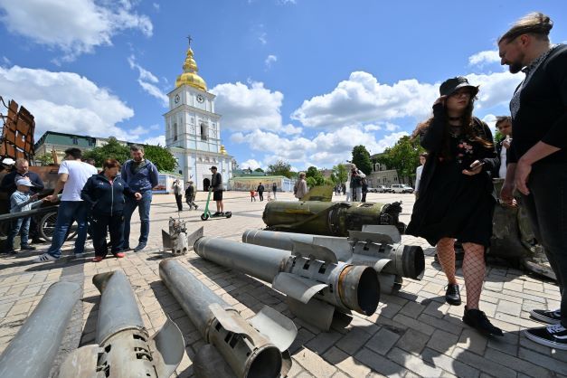 ©La ville de Kiev organise une exposition en plein air de matériels militaires russes détruits durant les combats. (AFP)