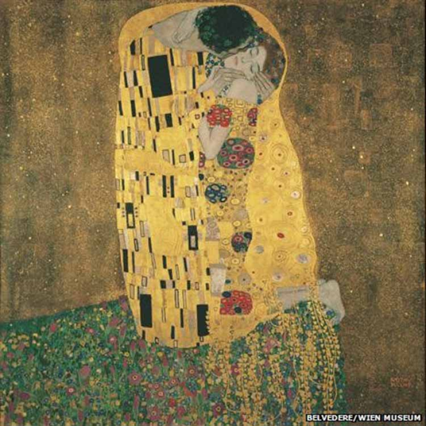 En 1890, Klimt tombe amoureux de la belle Émilie Flöge. Elle devient son modèle, notamment pour Le Baiser.