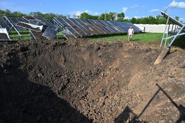 Ce cratère donne une idée de la puissance de l'explosion d'un missileDonetsk connaît le même sort