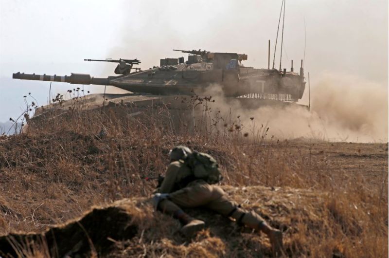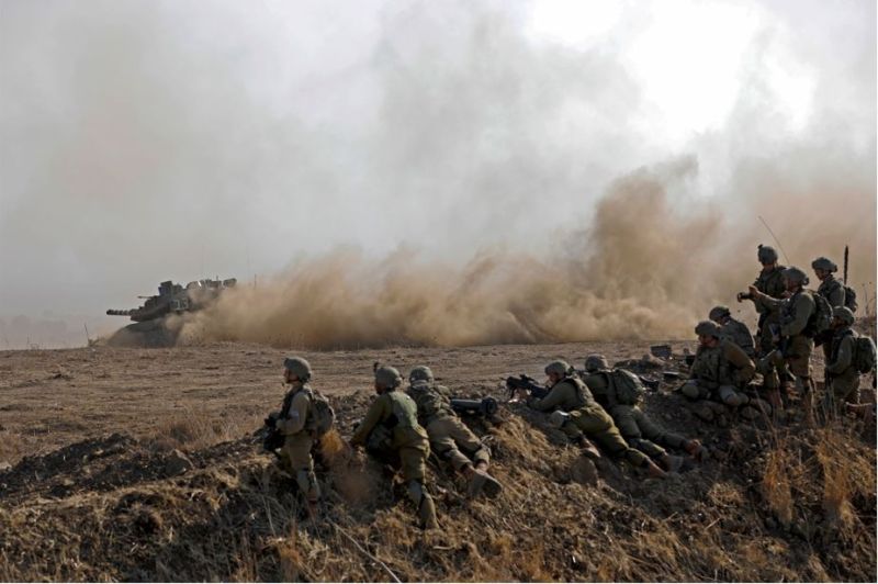 Des soldats israéliens de la Brigade Nahal participent à un exercice près de la colonie de Kidmat Tsvi sur les hauteurs du Golan annexées par Israël"Droit à l'autodéfense"