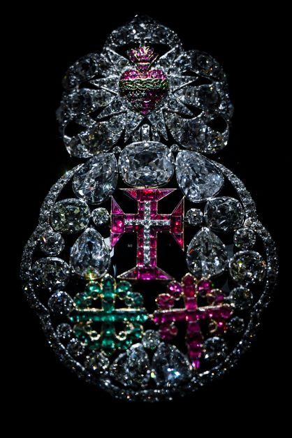 La Croix du Portugal, au centre de ce bijou, est originaire de l'Ordre portugais du Christ, fondée en 1319.Un investissement de 31 millions d'euros a finalement permis d'édifier cette partie manquante en 2021, avec une structure d'architecture contemporaine à la façade striée, pour y accueillir le musée du Trésor royal.