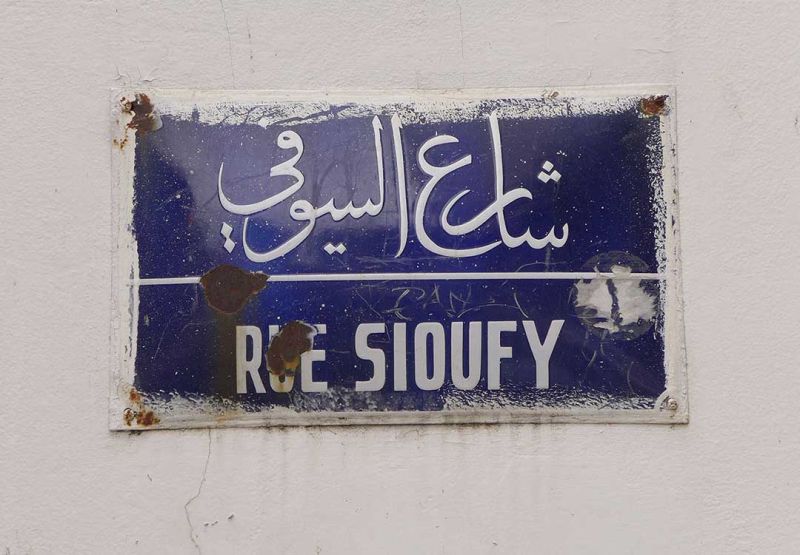 L’une des rares plaques de rues encore accrochées sur les murs de la ville avec une belle calligraphie arabe. Il existe juste une autre qui se trouve à Basta el-Tahta et qui porte le nom de Haroun el-Rachid.
