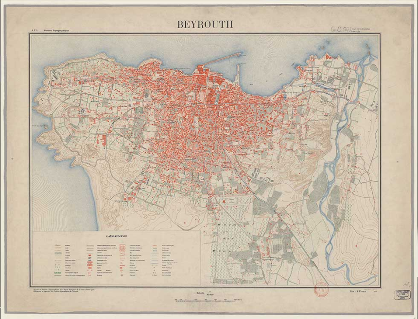 Une des premières cartes réalisées par le Bureau topographique du Levant en 1922 pendant le mandat français avec des appellations inadéquates.