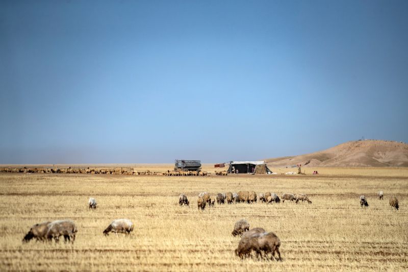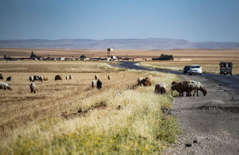 Dans le village de Oum Hajrah situé à 40 kilomètres au nord-est de la ville de Hassaké, M. Fatimi contemple son champ où désormais le bétail paît.