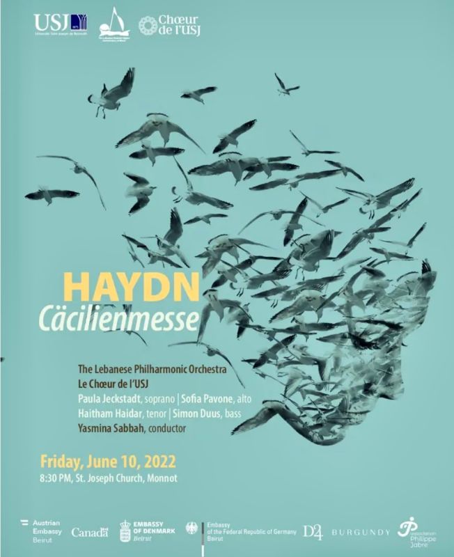 Le concert du Chœur de l’USJ et de l’Orchestre philharmonique du Liban aura lieu le vendredi 10 juin 2022 à 20h30 à l’Église Saint-Joseph (Monnot), sous la conduite de Yasmina Sabbah avec Paula Jeckstadt (soprano) - Autriche; Sofia Pavone (alto) - Allemagne; Haitham Haidar (ténor) - Canada; et Simon Duus (basse) - Denmark. En collaboration avec les ambassades d’Autriche, Canada, Denmark et Allemagne.