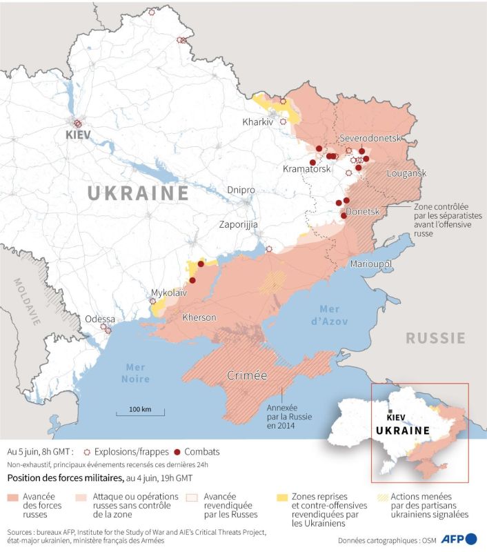 Dans la matinée, la présidence ukrainienne avait fait état d'"assauts et de bombardements d'artillerie constants sur Severodonetsk et les villages alentours".