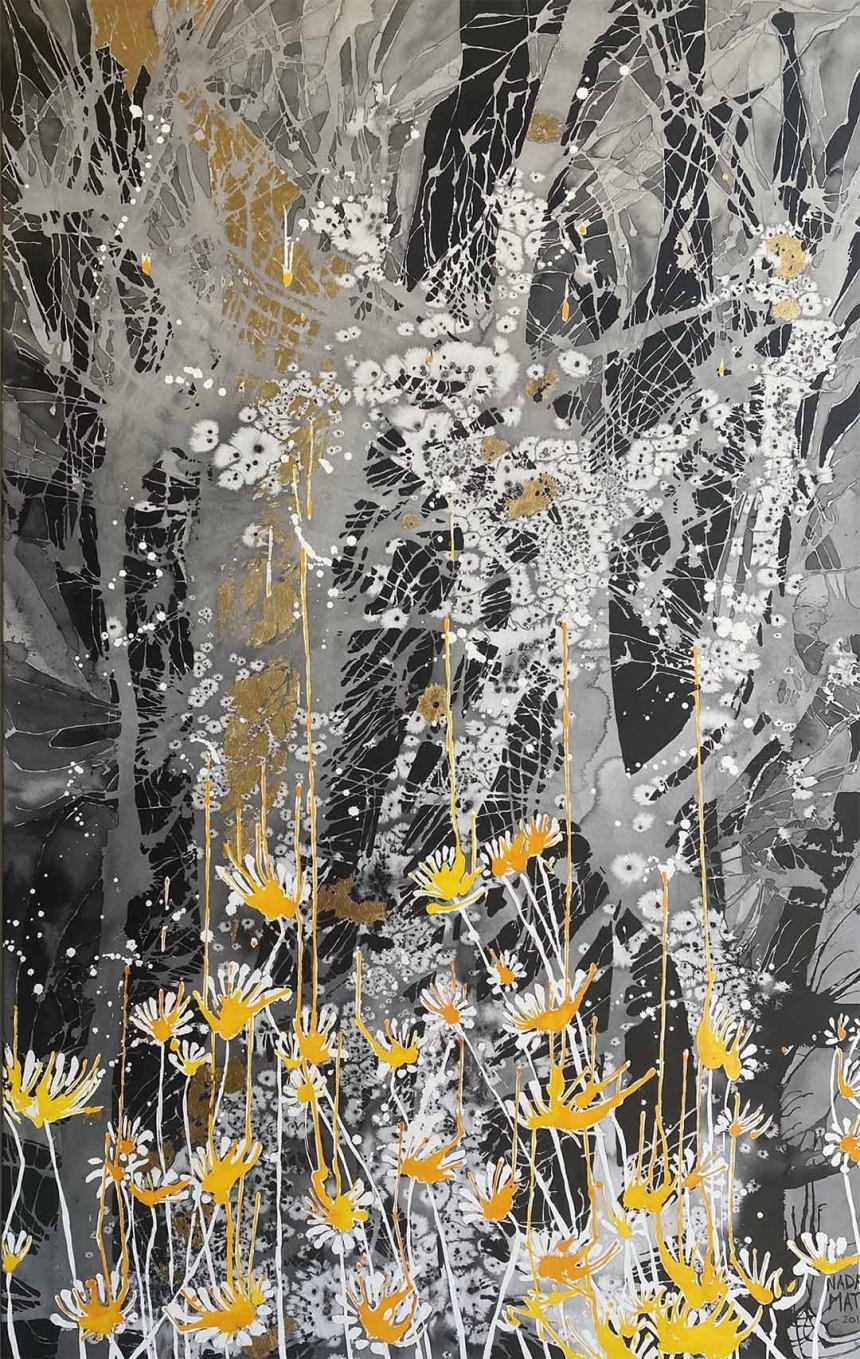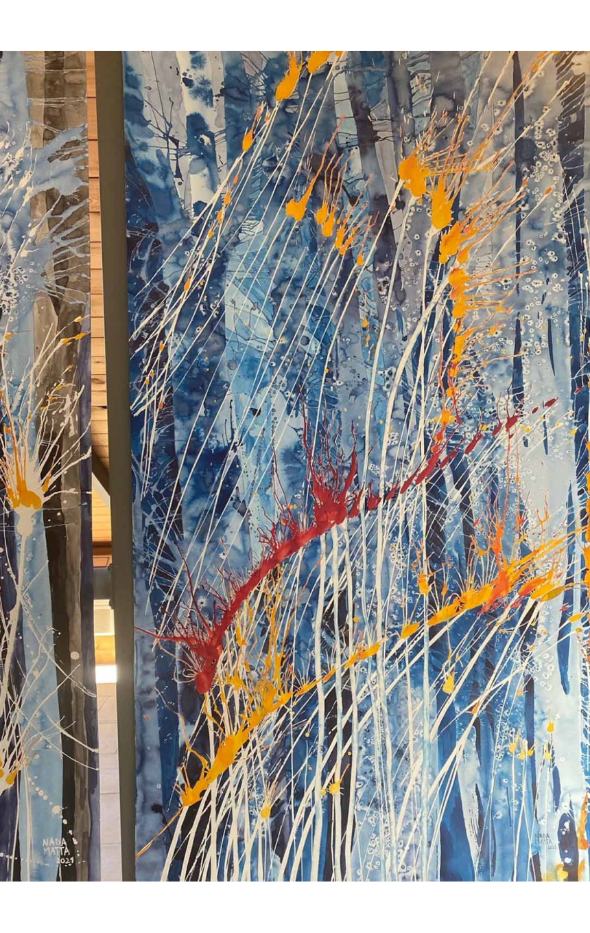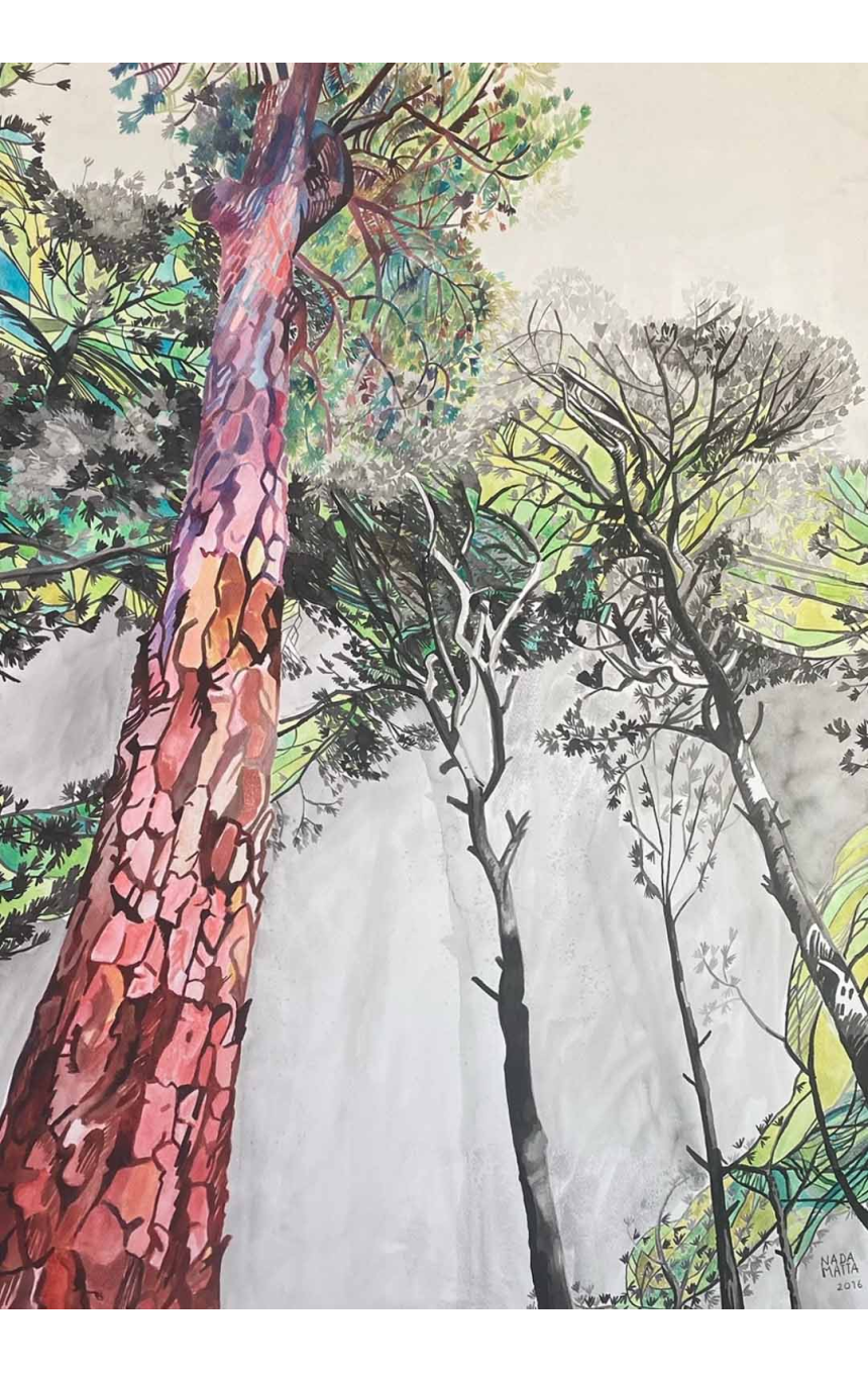 Elle habite au creux d'une forêt et elle la redessine de l'intérieur de sa jolie maison. Elle se reconnecte à elle-même en se connectant à la nature, source de la création. Nada Matta, l'artiste qui baigne au milieu de la nature, éprouve la pureté de ce qui l’entoure à tout instant et la transmet dans ses œuvres.