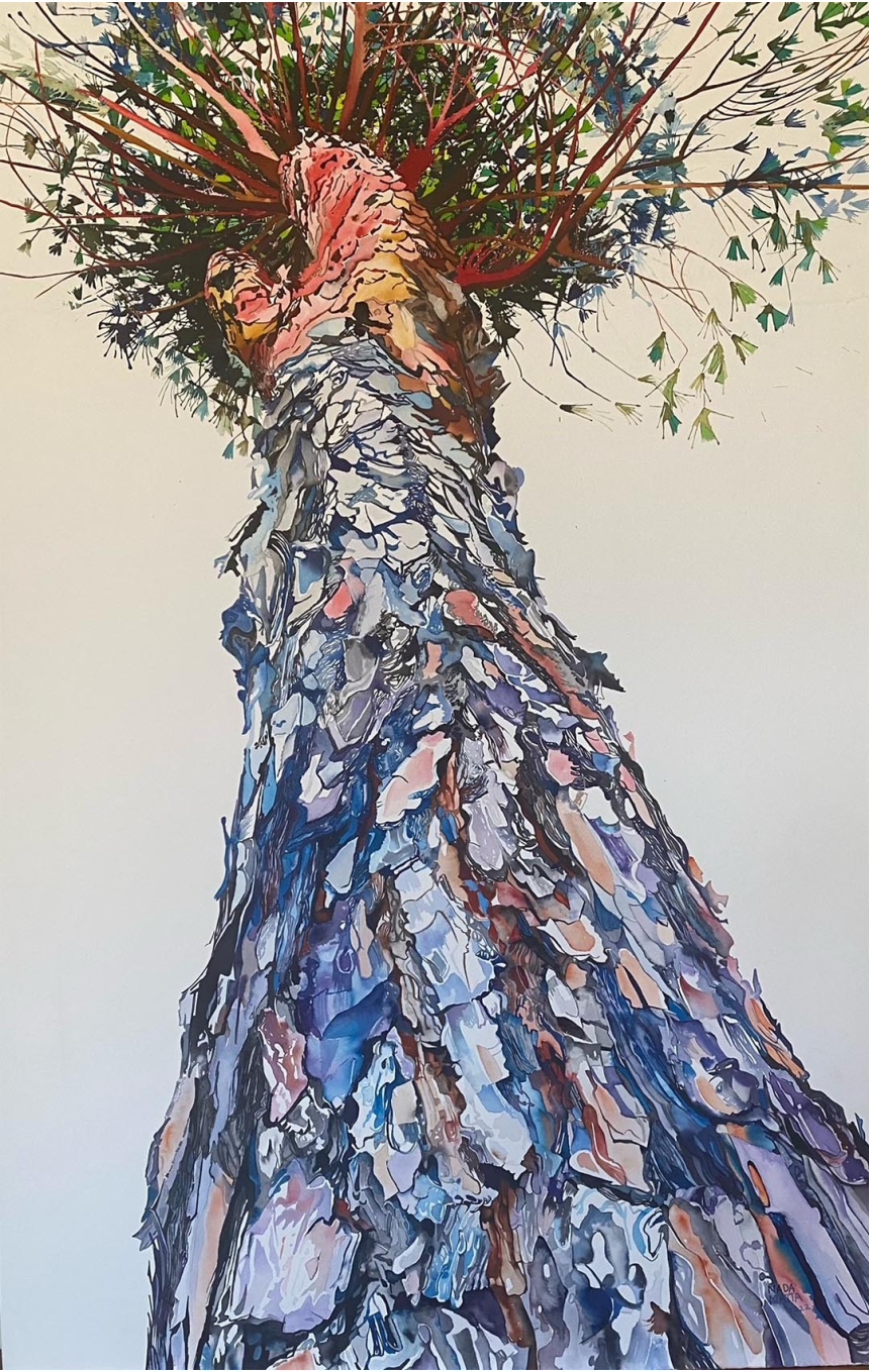 Elle travaille l'encre de Chine et l'acrylique liquide qu'elle dilue sur des papiers de coton. Elle les maroufle ensuite sur des toiles. C’est un bonheur qui émane de son art et qui se transmet à travers ses forêts vierges et multicolores. «Je ressens le lien de mon corps, de mon être à la terre, à la création. Je dessine ces arbres, ces corps entremêlés avec les herbes folles dans une énergie d’amour, pour réveiller la nature profonde et sauvage qui est en nous. Réveiller la pureté, l’unicité, la soif de vivre.»
