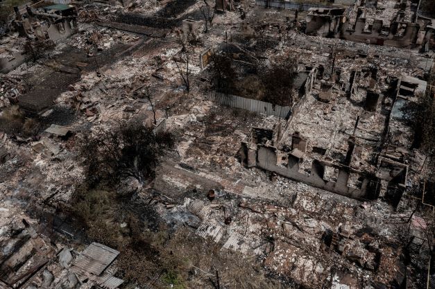 C'est ce qui reste du village de Pryvillya situé sur le front du Donbass