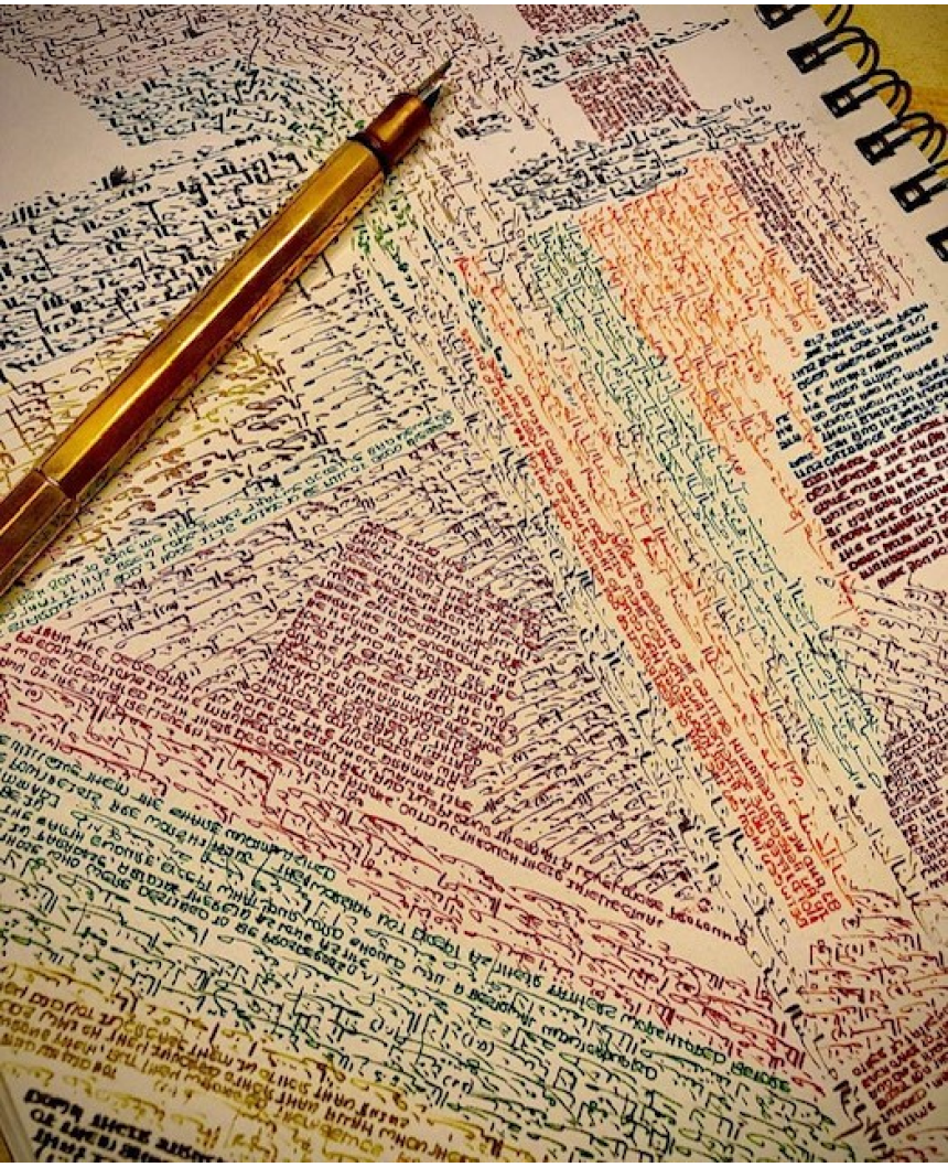 Une créativité unique en son genre qu’il fait rejaillir à travers des centaines de livres qu’il réécrit avec une infinie patience et une passion inégalées. Des mots qui prennent vie sur du papier, avec des formes qui s’enchevêtrent et se mélangent pour le bonheur de celui qui entre dans ce monde fantastique et mystique.