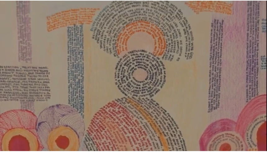 Le premier livre qu’il écrit sur papier est Les Confessions de Saint Augustin qu’il a étudié à l’université américaine. Il écrit ce livre comme une histoire où les mots deviennent eux-mêmes motifs. Il permet à l’observateur de lire une histoire tout en l’admirant sur un tableau.