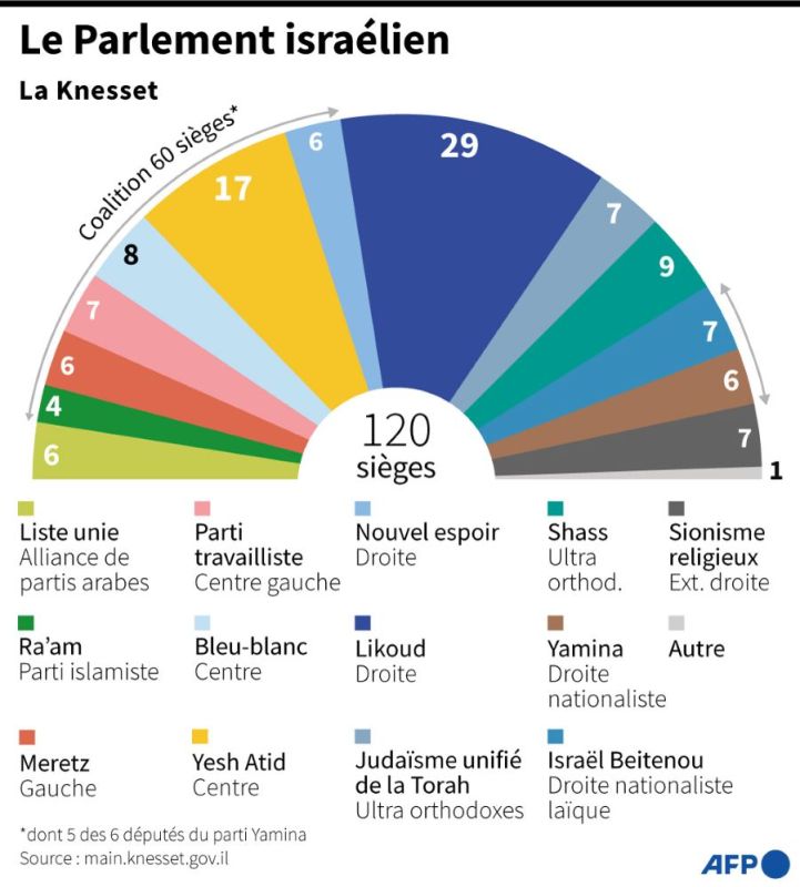 Benyamin Netanyahou, ancien Premier ministre, a accusé lundi soir la coalition d'avoir "dépendu de soutiens terroristes" et "abandonné le caractère juif d'Israël. (AFP)"Le Likoud va dire qu'intégrer un parti arabe dans la coalition a été un péché impardonnable, un acte de trahison du pays. Les sondeurs du Likoud ont déjà discerné chez des juifs israéliens une sorte de haine ou un désir de se venger contre l'ensemble de cette minorité", qui représente environ 20% des 9,6 millions d'habitants du pays, poursuit le quotidien.