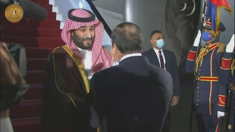 MBS reçu sur le tarmac de l'aéroport du Caire par le président égyptien Abdel Fattah al-Sissi.Cet éditorialiste critique au Washington Post a été tué et démembré le 2 octobre 2018 dans les locaux du consulat saoudien à Istanbul alors qu'il venait chercher des papiers nécessaires à son mariage avec sa fiancée turque.