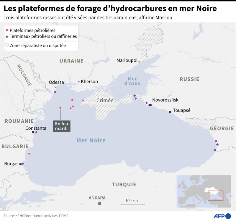 Affrontements pour un îlot stratégique, navire russe coulé, tirs contre des plateformes gazières, riposte contre la zone côtière... La bataille s'intensifie en mer Noire, au large des côtes de l'Ukraine, qui y défie la puissance navale russe.