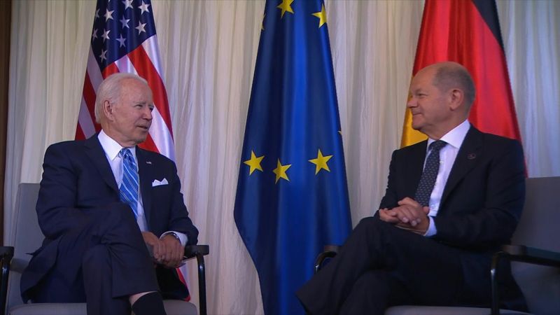 Le président Biden et le chancelier Scholz, hôte du sommetLe Premier ministre britannique a toutefois mis en garde contre toute tentation d'une solution négociée "maintenant" en Ukraine au risque de prolonger "l'instabilité mondiale".