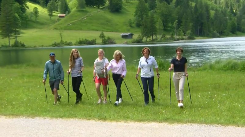 De gauche à droite: Mesdames Michel, Scholz, Macron, et Johnson (5ᵉ personne) se sont offertes une randonnée.Opération séduction envers le Sud