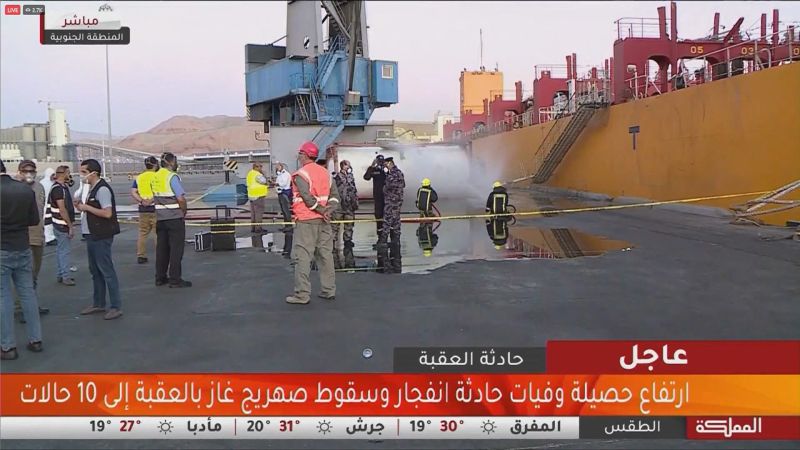 L'adjoint au chef de l'Autorité portuaire de la région d'Aqaba, Haj Hassan, a déclaré à al-Mamlaka qu'une "corde de fer transportant un conteneur contenant une substance toxique s'est rompue, ce qui a entraîné la chute et la fuite de la substance toxique".