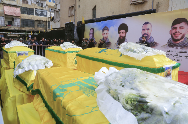 Funérailles de combattants du Hezbollah tués au combat en Syrie, en 2020.En visite à Damas samedi, le ministre iranien des Affaires étrangères Hossein Amir-Abdollahian a condamné la frappe, estimant qu'Israël "cherche toujours à porter atteinte à la sécurité et la stabilité en Syrie". L'agence officielle Sana a diffusé des images vidéo présentées comme étant le site visé par la frappe où étaient visibles des gravats au milieu de champs. Le raid a eu lieu à quelques km au sud de Tartous, deuxième port du pays qui abrite une importante base navale russe.