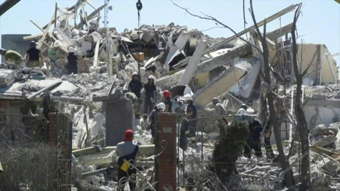 Les destructions causées par les missiles russes à Sergueïvka, près de la ville d'Odessa.Vendredi soir, M. Zelensky a accusé Moscou d'utiliser la "terreur [...] délibérée", après des frappes sur Serguiïvka, au bord de la mer Noire sur "un grand immeuble" et "un complexe touristique". La localité est environ 80 km au sud-ouest d'Odessa dans le sud de l'Ukraine.