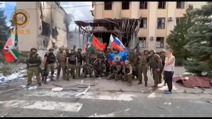 Sur sa chaîne Telegram, le dirigeant de la république russe de Tchétchénie, Ramzan Kadyrov, diffuse une vidéo de soldats tchétchènes qui se trouveraient à Lyssytchansk. Sur les images, des soldats armés et en uniforme sont sur une route de campagne puis dans une ville, avec des drapeaux tchétchènes, soviétiques et russes. (AFP)La ville, qui comptait avant la guerre près de 100.000 habitants, est jumelle de celle de Severodonetsk, conquise la semaine dernière par Moscou après le retrait des forces ukrainiennes à l'issue de plusieurs semaines de bataille. Les deux villes sont séparées par la Donets, principal affluent du Don.