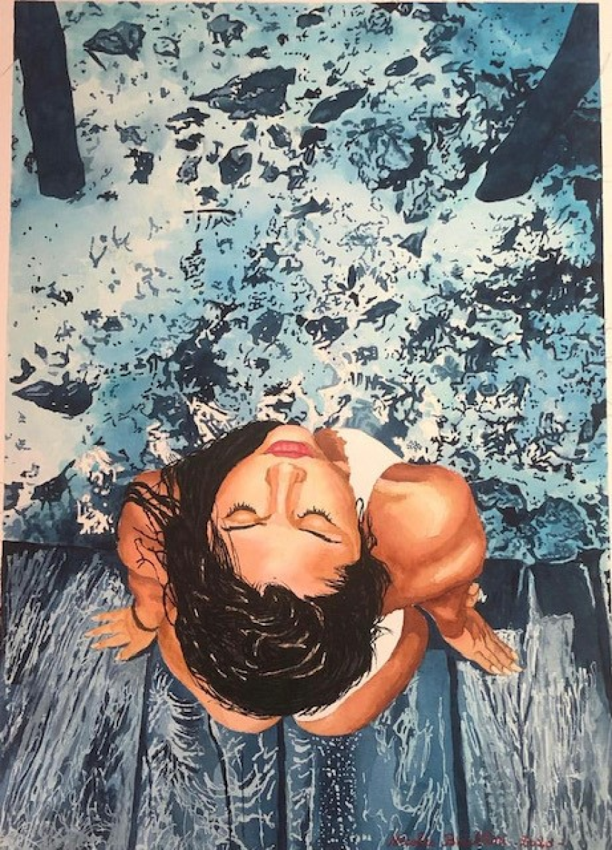 Naïades et déesses de la mer, créatures des eaux, l’artiste leur donne vie et leur fait honneur. Les Grandes Baigneuses des temps modernes se diluent sur les papiers de coton et flottent, épanouies et sereines, dans leur beauté la plus simple.
