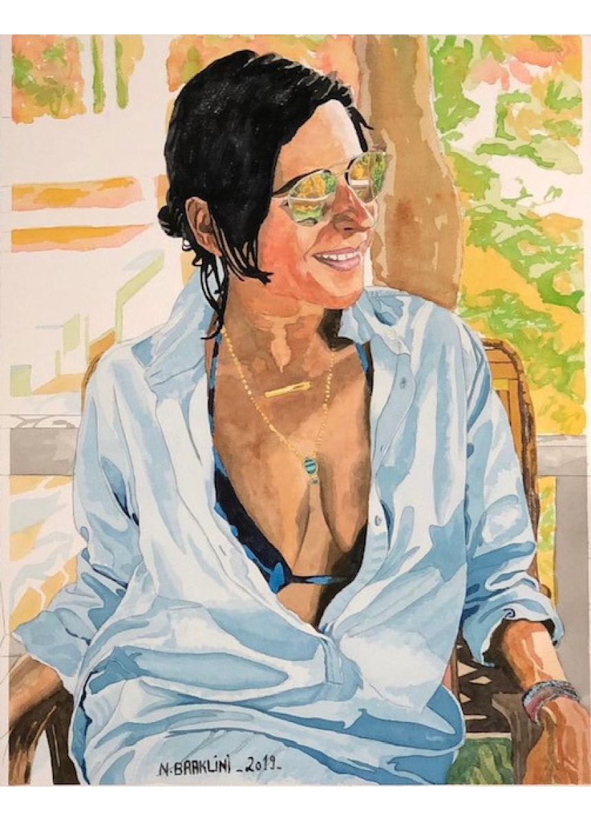 Nicolas Baaklini est par ailleurs portraitiste. Après avoir longtemps évité ce genre, par crainte de mal faire, il se lance et y excelle. Les portraits les plus émouvants qu’il réalise sont incontestablement ceux de sa mère bien-aimée, de ses enfants et de son épouse… sa muse, Fadia Ahmad.