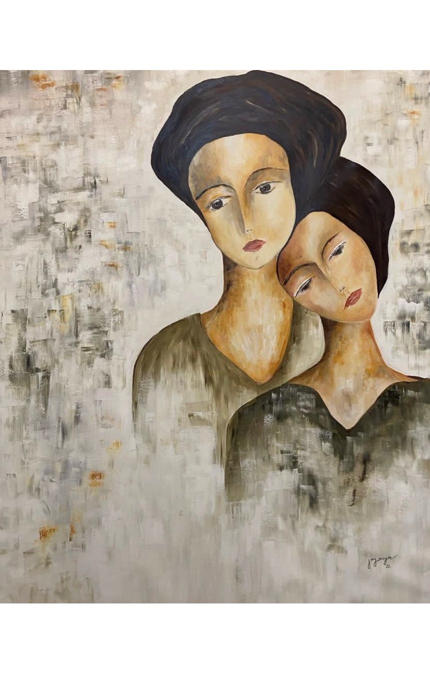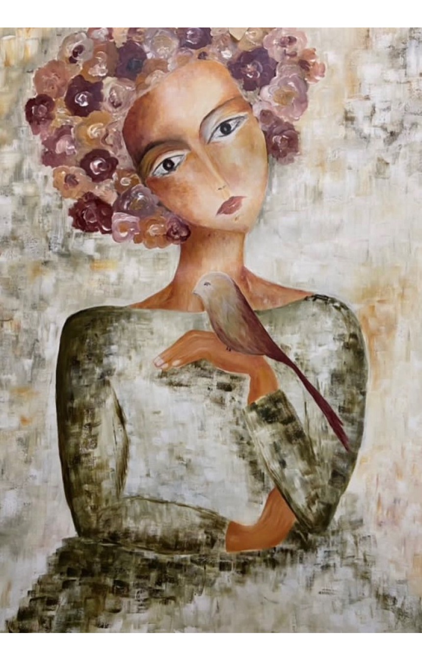Des femmes, des personnages aux allures particulières qui décrivent des caractères, images de la société, un oiseau qui vient se poser sur une épaule, des cheveux en fleurs, un buste qui abstrait la subtilité d'une attitude à peine divulguée, une mère et sa fille… l’artiste peint tant d’émotions derrière les lignes fines de ses œuvres.