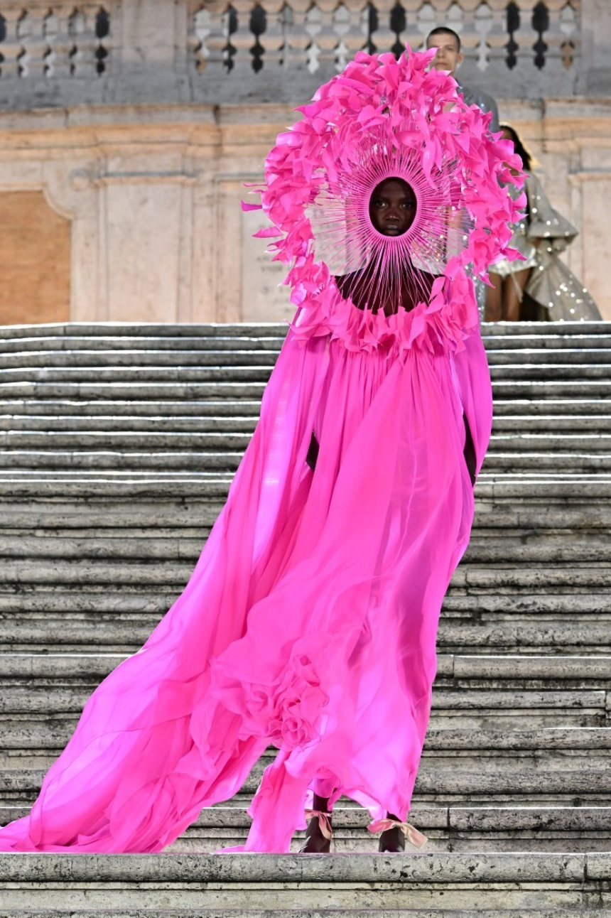 C’est par cette image forte que le défilé événement de la collection Automne-Hiver 2022-2023 de la maison romaine s’est achevé vendredi au cœur de la Ville Éternelle. Une exception - Valentino défile normalement durant la fashion week haute couture de Paris - voulu par Pierpaolo Piccioli, le directeur artistique de la maison, pour célébrer les origines et la relation vive et quotidienne de Valentino avec Rome.