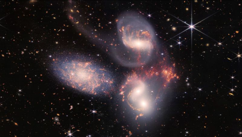 Autre cible révélée: le Quintette de Stephan, un groupement de galaxies. Cinq sont visibles au total sur cette spectaculaire image, dont quatre en interaction entre elles, dans une véritable danse gravitationnelle. Deux sont en train de fusionner.