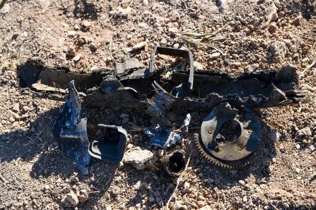Les restes de la moto de Maher al-Agal, présenté comme "l'un des cinq plus hauts dirigeants" de Daech. (AFP)