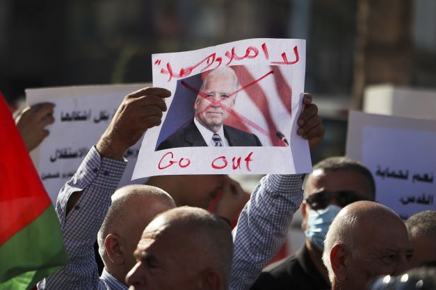 Des Palestiniens ont manifesté leur colère contre le président américain en Cisjordanie occupée.Là où toutes les administrations américaines ou presque ont dirigé beaucoup d'efforts diplomatiques vers le Moyen-Orient, à grands coups d'initiatives pour le processus de paix israélo-palestinien, celle de Joe Biden reste jusqu'ici en retrait. Le président prévoit, selon un haut responsable américain, d'annoncer vendredi, lors d'une rencontre avec le dirigeant palestinien Mahmoud Abbas en Cisjordanie occupée, une aide "significative" pour les hôpitaux de Jérusalem-Est, et un projet de développement d'un réseau 4G tant en Cisjordanie qu'à Gaza.