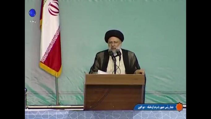 Le président iranien Ebrahim Raïssi lors de son allocution télévisée.Israël craint entre autres qu'une levée des sanctions regarnisse les coffres de l'Iran ce qui lui permettrait d'accroître son soutien à ses alliés régionaux comme le Hezbollah libanais ou le Hamas palestinien, bêtes noire de l'État hébreu. Les États-Unis de Biden, qui tentent d'étendre le processus de normalisation entre Israël et des pays arabes lancé par Donald Trump, "s'engagent à œuvrer avec d'autres partenaires face aux agressions et activités déstabilisantes de l'Iran", selon la déclaration.