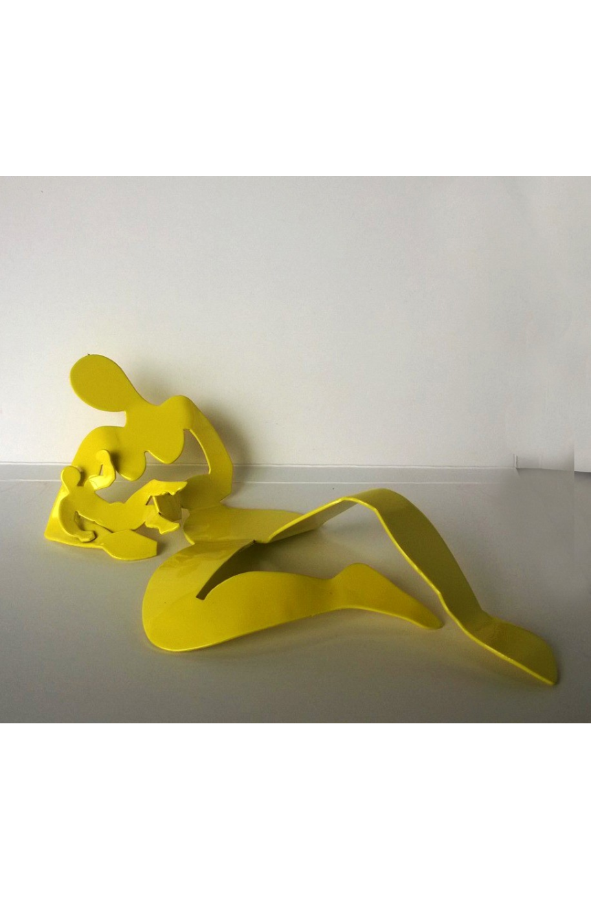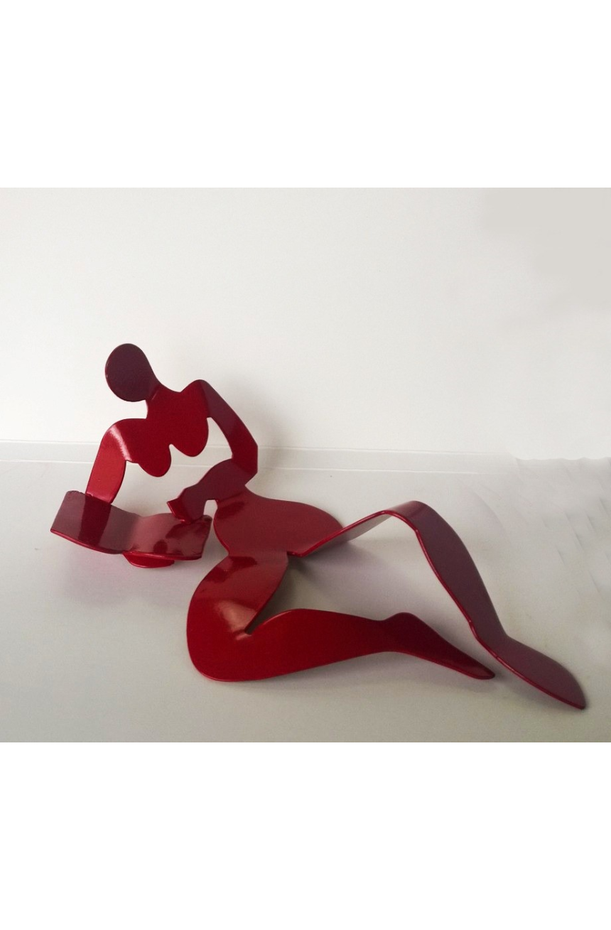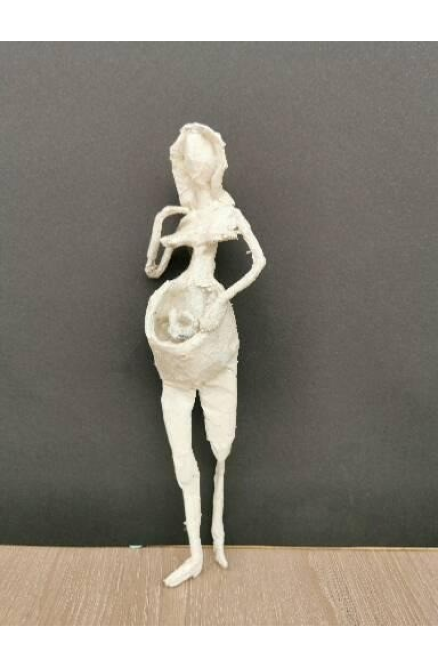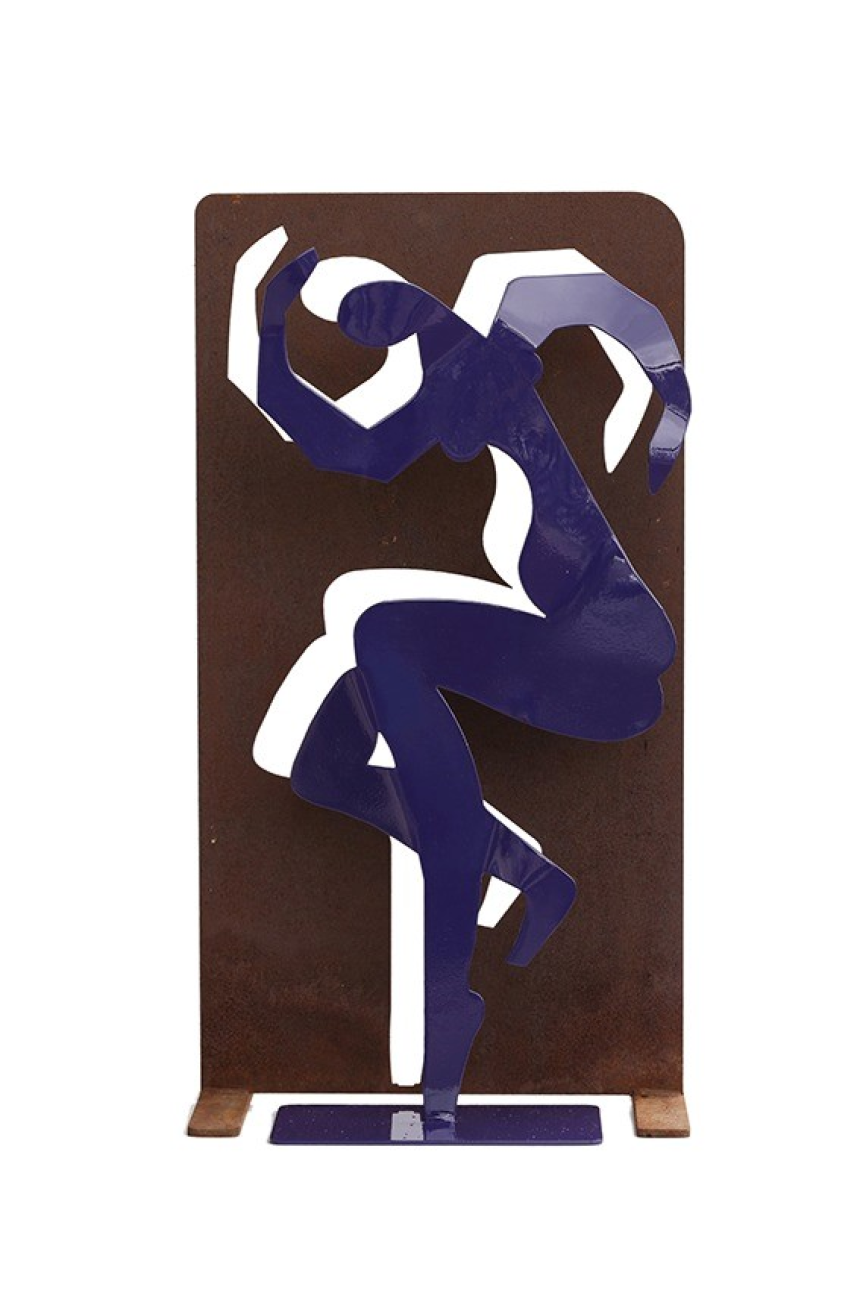 par une forme «négative» c’est-à-dire vidée dans une forme rectangulaire placée derrière la figure. Enfin, il existe un troisième groupe de sculptures de femmes au quotidien, qui sont les gardiennes du patrimoine et de sa reconstruction. La technique rigide de ces sculptures est une approche très contemporaine par rapport à la sculpture classique en pierre ou en bronze. Elle consiste à effectuer une coupe dans la plaque de fer d’après un dessin du modèle fait préalablement, puis, une torsion selon le mouvement et, finalement, la soudure au socle. À la fin le coloriage à l’atomiseur. Depuis le concept jusqu’à la fin, mon idée fut visualisée et l’exposition réalisée pour réunir en un moment tous mes proches et amis qui sont partis chercher la paix sous d’autres cieux. J’attends le jour des retrouvailles.»