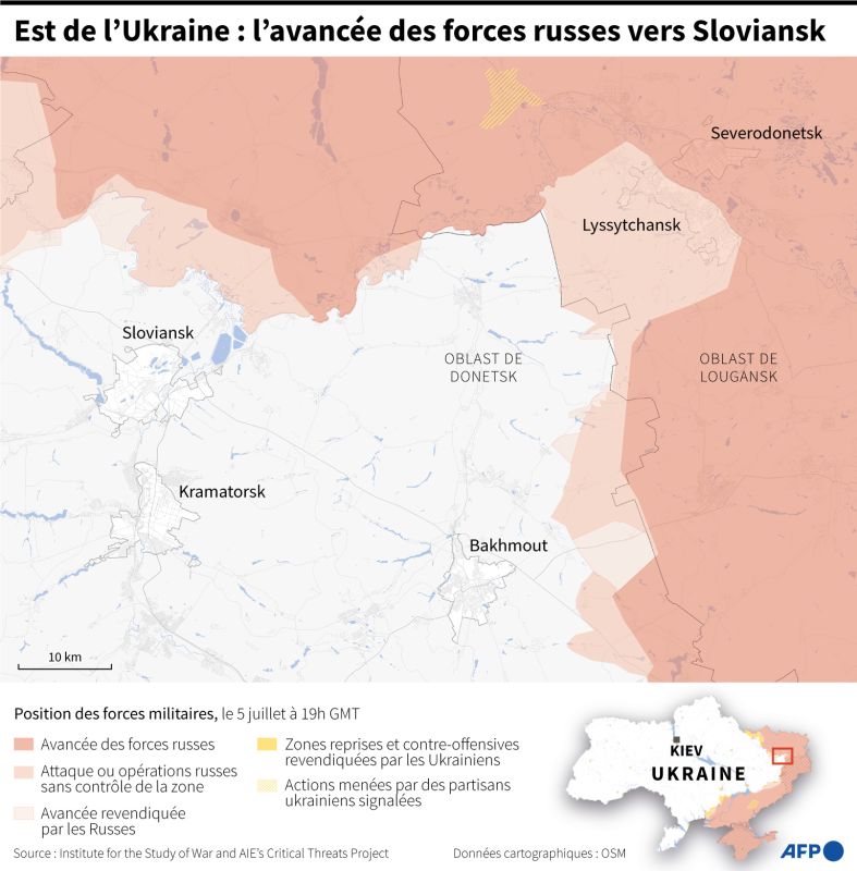 Les forces séparatistes ont également affirmé continuer à progresser et être en train de prendre le contrôle complet de la ville de Siversk, attaquée après la prise de Lyssytchansk plus à l'est au début du mois.