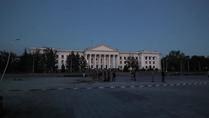 La frappe sur la place centrale, nommée Place de la Paix, a laissé un cratère de deux mètres et brisé les vitres des immeubles alentour, mais n'a pas fait de victimes car elle est intervenue après le couvre-feu, selon un responsable de la défense antiaérienne de la 81e brigade ukrainienne, qui n'a pas souhaité donner son nom.