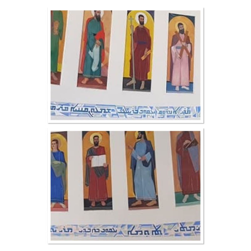 À Youngstown, il intègre la graphie serto (cursive) dans un patchwork en damier situé derrière l’autel. Le texte consiste en l’hymne du Avo de qoushto (Père de justice) chantée chez les maronites, lors de la célébration de l’eucharistie.