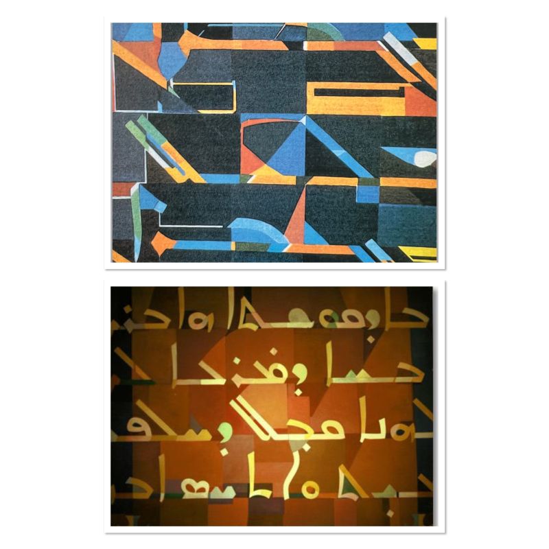 Mais c’est surtout dans la graphie syriaque que va se jouer l’exploration de l’abstrait. Après s’être octroyé une place visuelle importante dans la composition figurative, l’écriture est promue au rang de sujet central. Elle devient la source unique sur laquelle se construit le tableau, sa structure, ses formes et ses couleurs, ainsi que la recherche du sens.