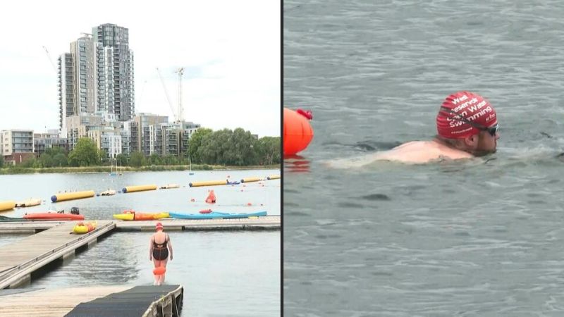 A Londres, baignade dans un lac artificiel pour échapper à la chaleur (AFP)
