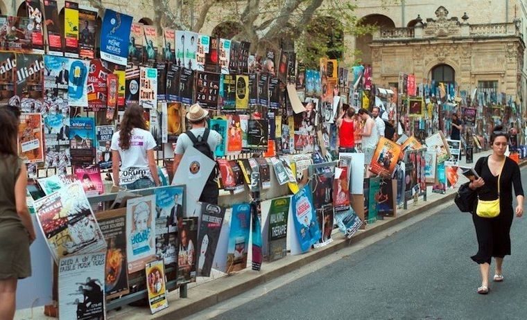 La profusion d’affiches du festival Off. (crédit : marianne.net)À l’office du tourisme ou au « Village du Off », on vous incitera à acheter la « carte off », votre carte de réduction de 30 % sur tous les spectacles. Les billets vous coûteront alors environ douze euros. Le catalogue du festival au format papier (500 pages) ou électronique regroupe plus de mille trois cents spectacles, triés par genre, auteur, lieu, horaire… Il faudra absolument le consulter pour repérer les pièces qui vous intéressent, appeler et réserver dans l’un des cent trente-neuf théâtres de la ville.