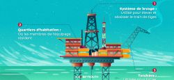 Cette infographie complète décrit en détail la méthode précise par laquelle la plate-forme de forage Transocean extrait les hydrocarbures des profondeurs de la mer.Explorez chaque étape du processus, du forage à l'extraction, pour acquérir une connaissance approfondie de la production d'énergie en mer. Habillage graphique: Ab. Farch.